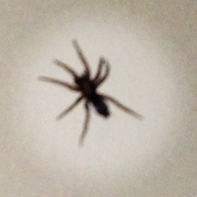 I spent the morning watching my new little buddy wander aimlessly across my ceiling, circling and stopping at what I can only assume is a spidey stop sign.  Apparently he had a busy Monday morning, lots to get done.